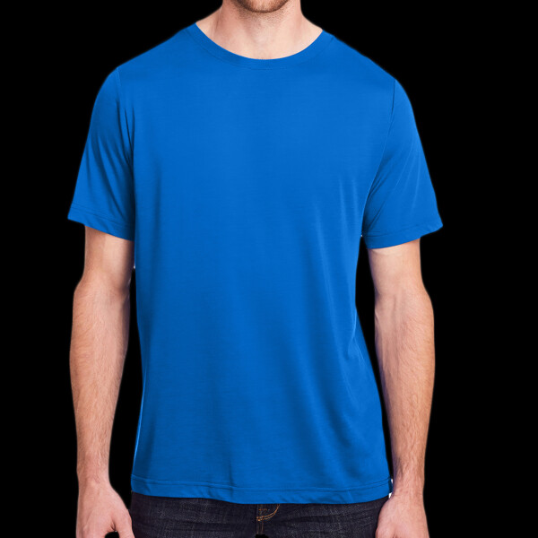 4.5 oz/yd2 / 160 gsm, 100% polyester jersey; Moisture-wicking and antimicrobial properties; ChromaSoft™ technology combines the colorfastness of cationic dyes with soft cotton-feel performance; Tear away label; Active fit; Easy care;