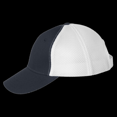 Spacer foam athletic mesh sides and back cool down this structured twill player.